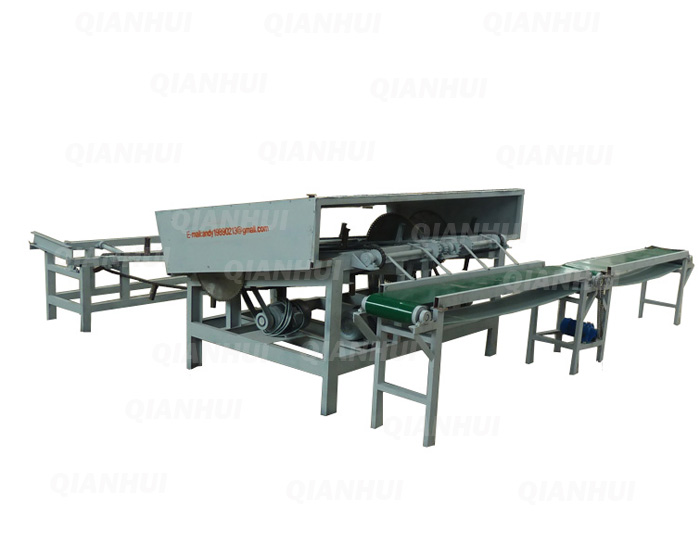 Key Features: 1. This log cutting saw machine is used to cut 2600mm logs to two pcs of 1270mm , or cut 2000mm logs to two pcs of 970mm . After cutting , the short logs will be conveyed to Log Debarking Machine directly by Belt conveyor, no need to carry logs by workers 2. One set of this cutting saw machine can supply wood logs for two sets of log debarkers 3. It will be the first machine in a veneer peeling line ,with this machine , your working efficiency will be increased greatly. | |
