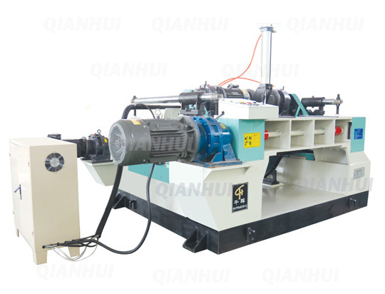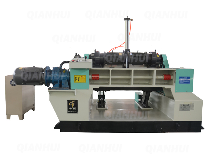 Key Features: 1. Servo System: This veneer lathe is equipped with 7.5kw Servo motor and 11kw Servo Drive Inverter,the control precision is much better than normal motor and normal inverters 2. Heavy Duty: The weight of this veneer lathe is 5300kg,much heavier than other model of machines,so the machines runs very stable,and the peeling precision will be very good,and this makes it suitable for peeling all kinds of hardwood logs 3. Slide pressing bar: There are two slide pressing bars on top of the machine,to press the knife and single roller table,so as to keep them more stable when the machine working,and to keep the high precision 4. Knife angle adjustable: This is our patent technology and we only use this technology on this model of veneer lathe,When the machine working and peeling wood logs,the knife angle will automatically changed when the log diameter gradually become smaller,so as to keep the thickness homogeneous and veneer appearance smooth and flatness 5. Big Diameter: The max peeling diameter of this machine is 400 mm,if need we can make it 500mm,so it can satisfy your requirements for peeling big diameter logs 6. Wide Thickness Range: The peeling thickness of this machine is 0.4-3.6 mm ,so it can satisfy your need for different thickness 7. Popular in India and Indonesia: we have agent in India and Indonesia,they are selling this model in their countries and the selling is very good,customers think highly of this machine because of its good veneer quality and good machine performance .